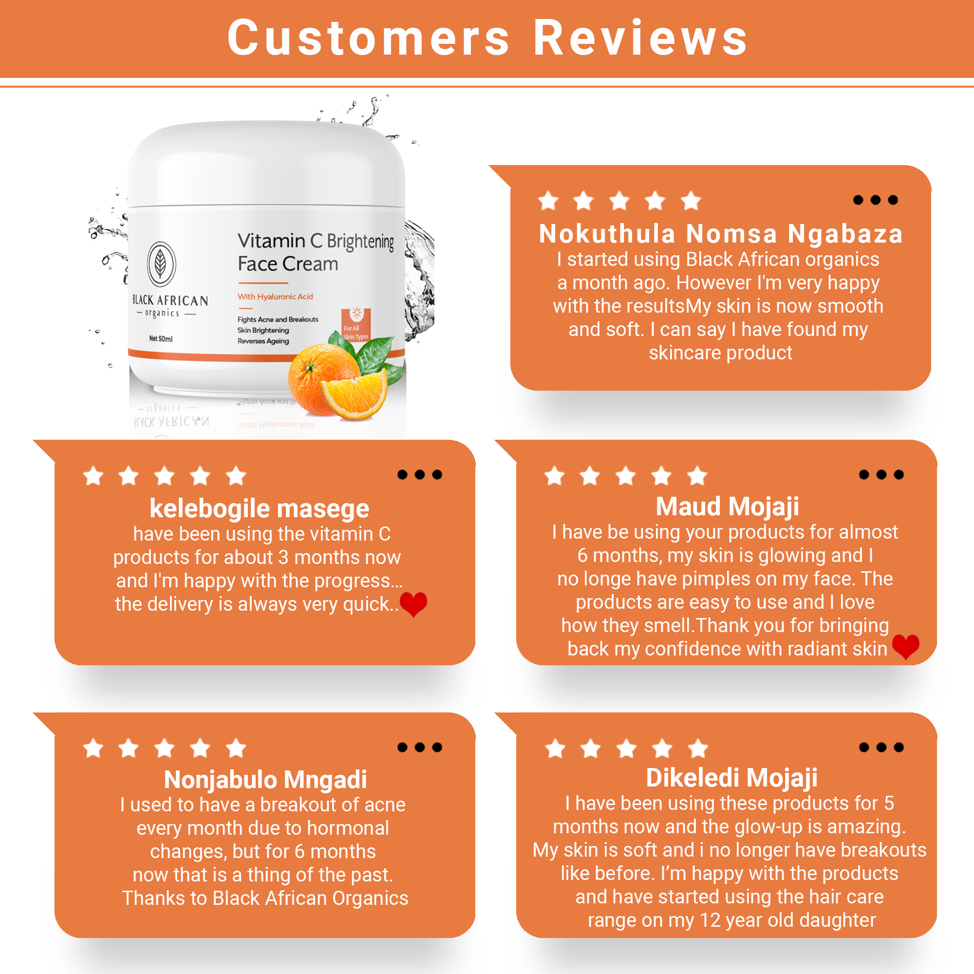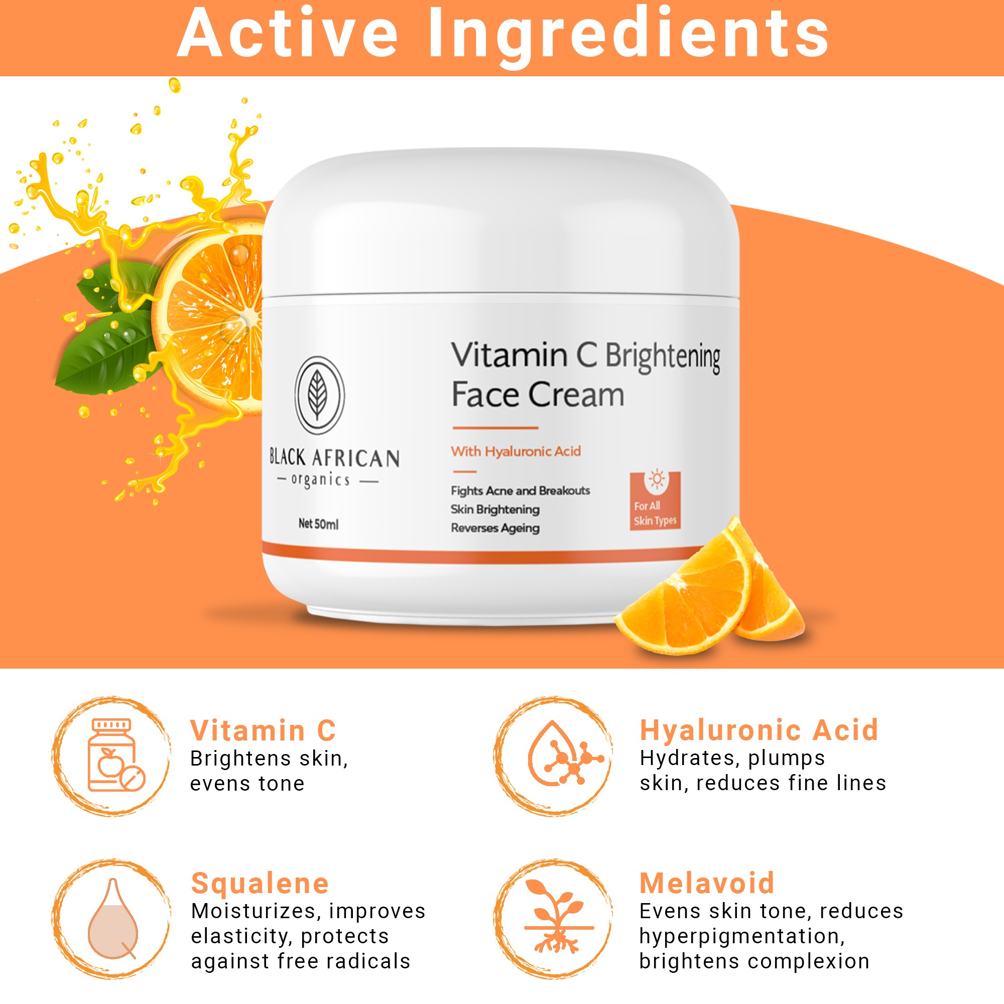 Indulge your skin in the transformative qualities of our Vitamin C Natural Anti-Breakouts Face Brightening Cream with Hyaluronic Acid. Enjoy clarified skin tone, reduced breakouts, faded scars, refined pores, and a reversed aging process. Embrace the confidence that comes with having a healthier, more radiant complexion. Try it today and experience the difference for yourself!