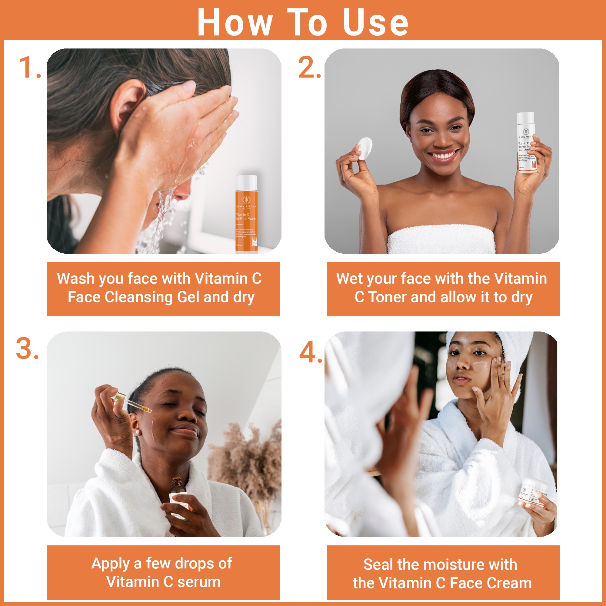 Complete 4-Product African Black Soap + Vitamin C Face Renewal Routine – Clear, Even, Glowing Skin
